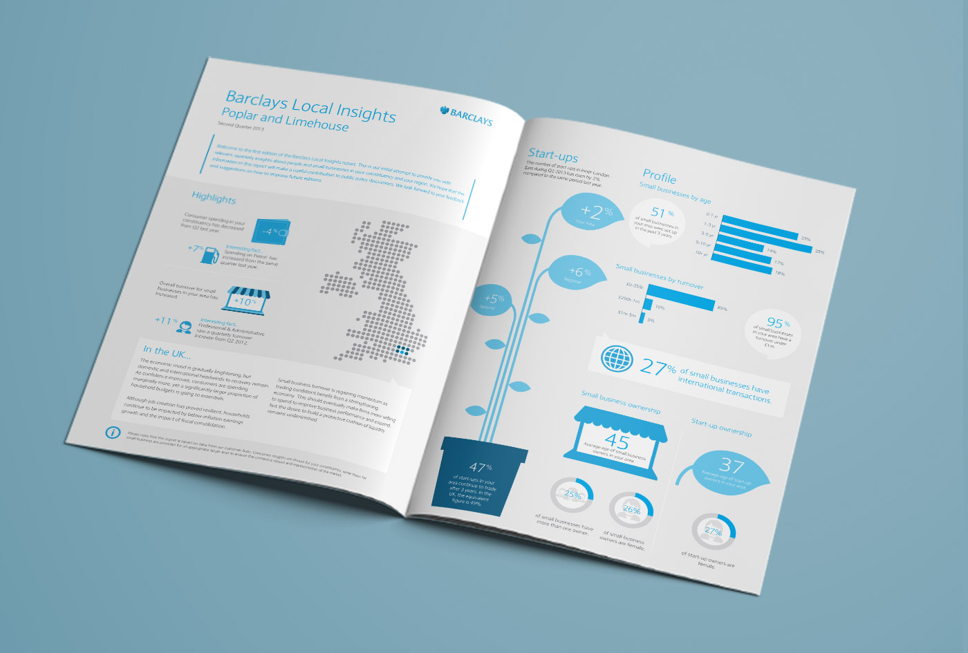 A standout achievement was my creative leadership contribution to the Local Insights initiative, producing over 500 constituency-level infographic booklets designed to position Barclays as a credible provider of economic insight to customers and policymakers. The work received positive feedback from MPs and senior leadership, and I was formally recognised as the creative representative on the programme. Across all projects, I prioritised clarity, accessibility, and consistency within Barclays’ enterprise standards, simplifying complex financial interactions while balancing innovation with trust and governance.